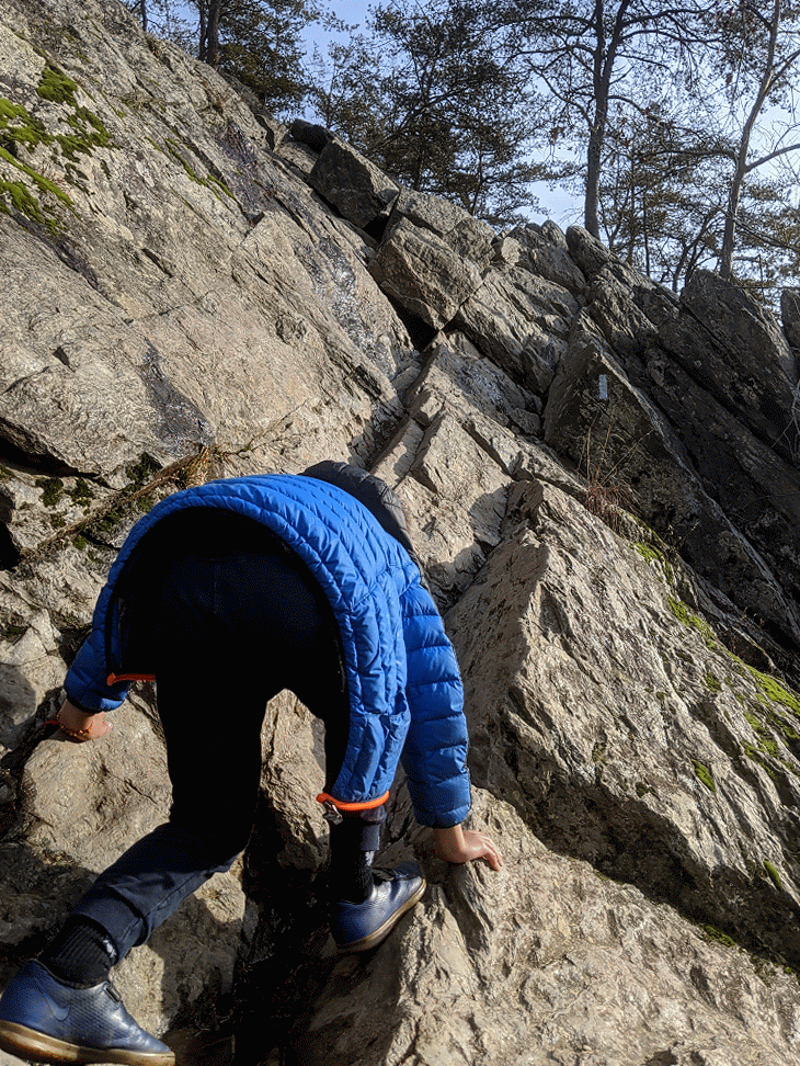 December 15. Scrambling up the Billy Goat Trail on the Maryland side of the Potomac River.